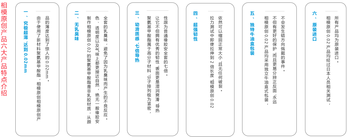 1998年日本相模公司突破性地發(fā)明以“聚氨基甲酸酯”為原料生產(chǎn)的相模原創(chuàng)0.02安全套,沒有乳膠及任何臭味,比普通橡膠安全套有著更佳的體熱傳導性,使用時體溫可于瞬間傳至伴侶體內,減輕不適及不自然感,并創(chuàng)下迄今為止零過敏的記錄。